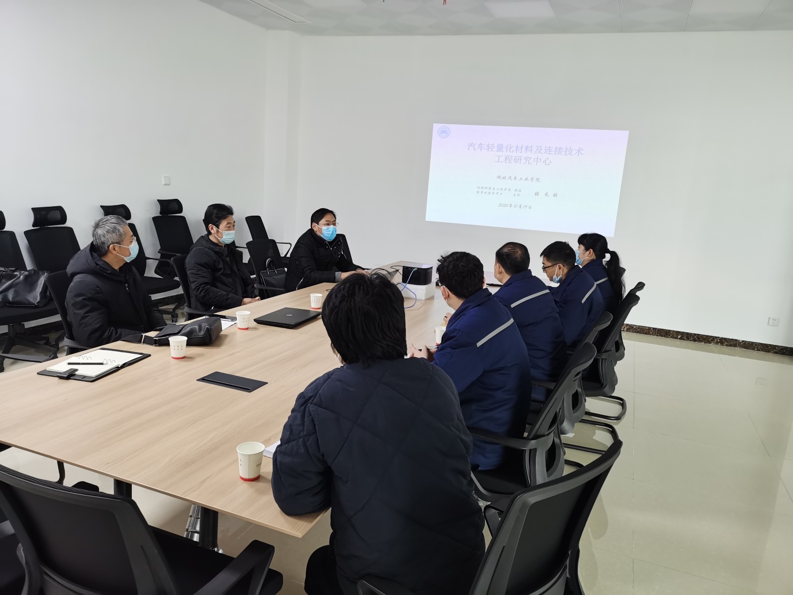 王天国首先介绍了我院近期审批成立的“汽车轻量化材料及连接技术工程研究中心”的建设背景、建设条件和建设规划;张元好介绍了学校近年来在材料加工方面取得的主要成果,以及科研方面的优势,希望加强校企合作;文世红介绍了公司目前面临的的主要技术问题以及技术发展重点,肯定了张春教授带领的科研团队已完成的产品优化工作,以及校企合作为公司带来的重大利益。随后宾主双方在产品应用、汽车材料、成型工艺等方面进行了交流和探讨,并达成了进一步深化合作的意向,张元好热情邀请文世红来学校参观交流。