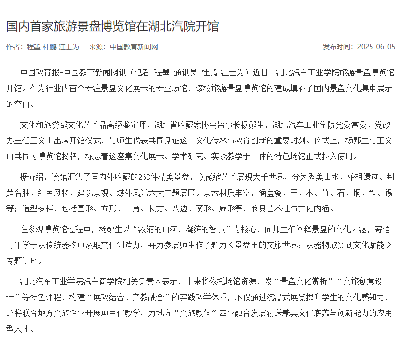 【中国教育新闻网】国内首家旅游景盘博览馆在湖北汽院开馆