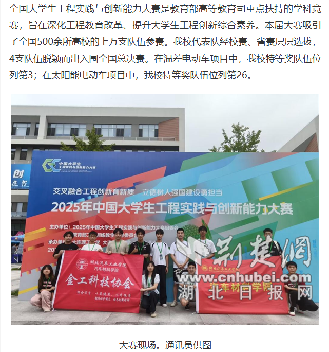 【荆楚网】汽院学子在第九届全国大学生工程实践与创新能力大赛中获佳绩