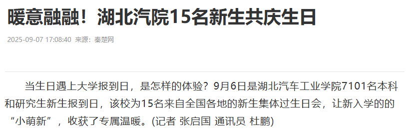 【秦楚网】暖意融融!湖北汽院15名新生共庆生日